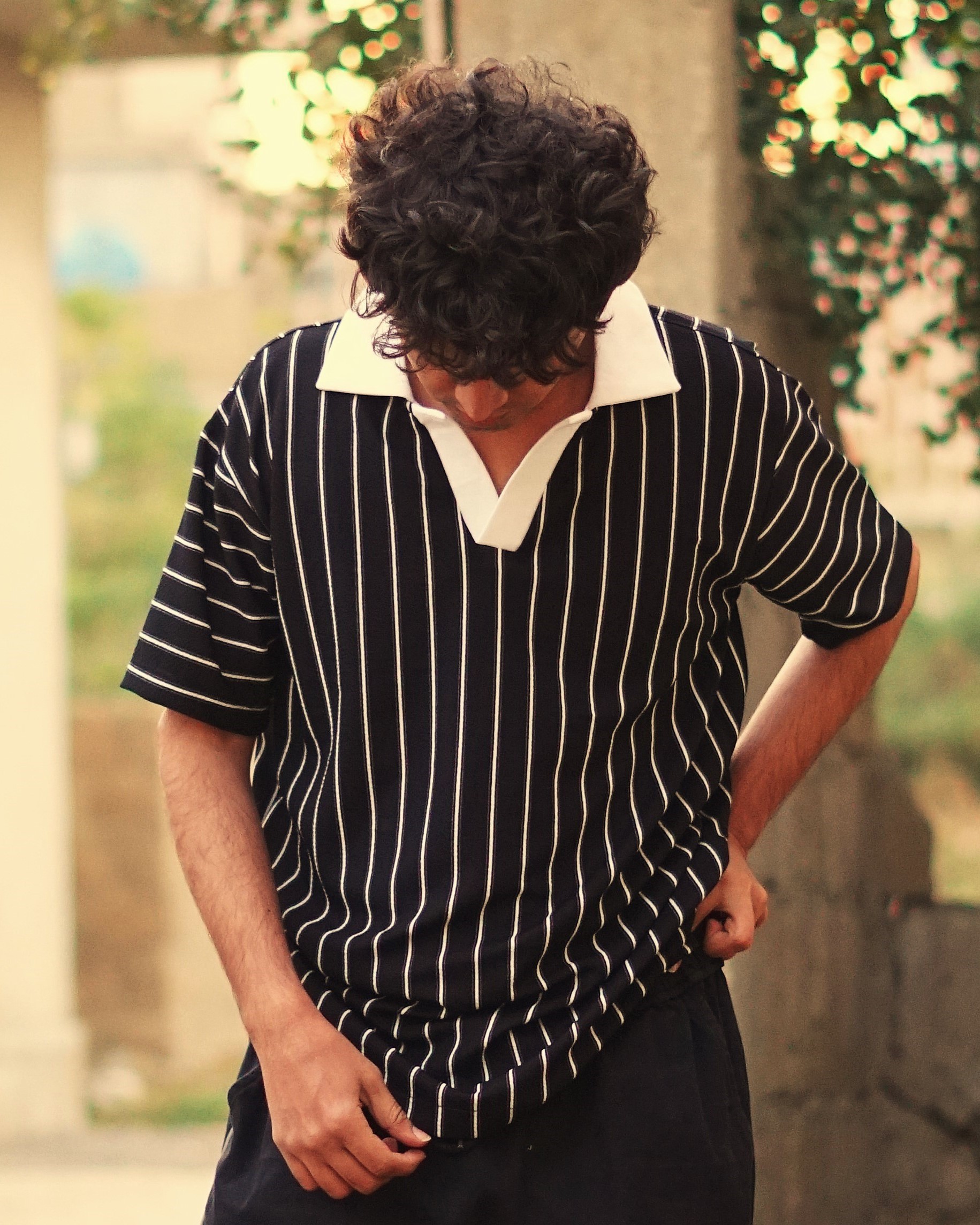 A timeless pinstripe polo with a modern relaxed fit, finished with a bold contrast collar for effortless everyday style.
