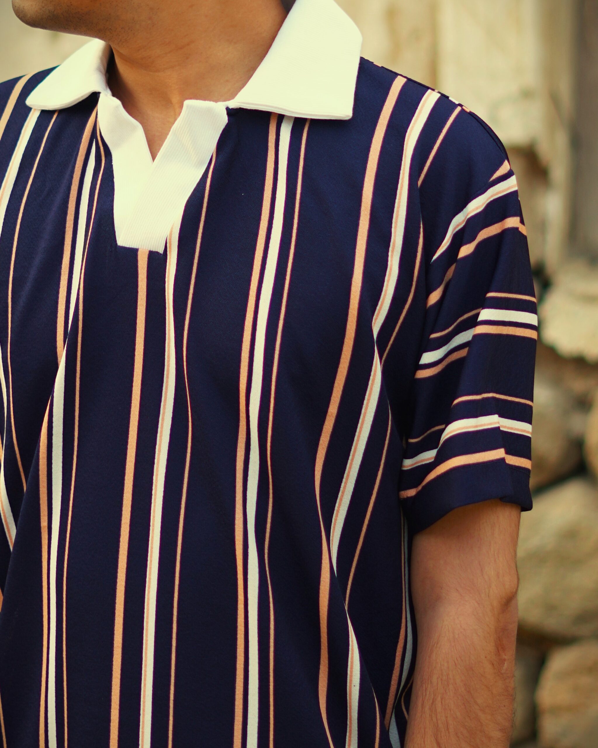 Step into timeless style with the BrandDeals Retro Stripe Polo. Featuring elegant vertical stripes on a deep navy base and a crisp white contrast collar, this polo blends vintage charm with modern comfort. Made from breathable, soft-touch fabric, it delivers a relaxed fit that’s perfect for casual days, weekend outings, or smart-casual looks.